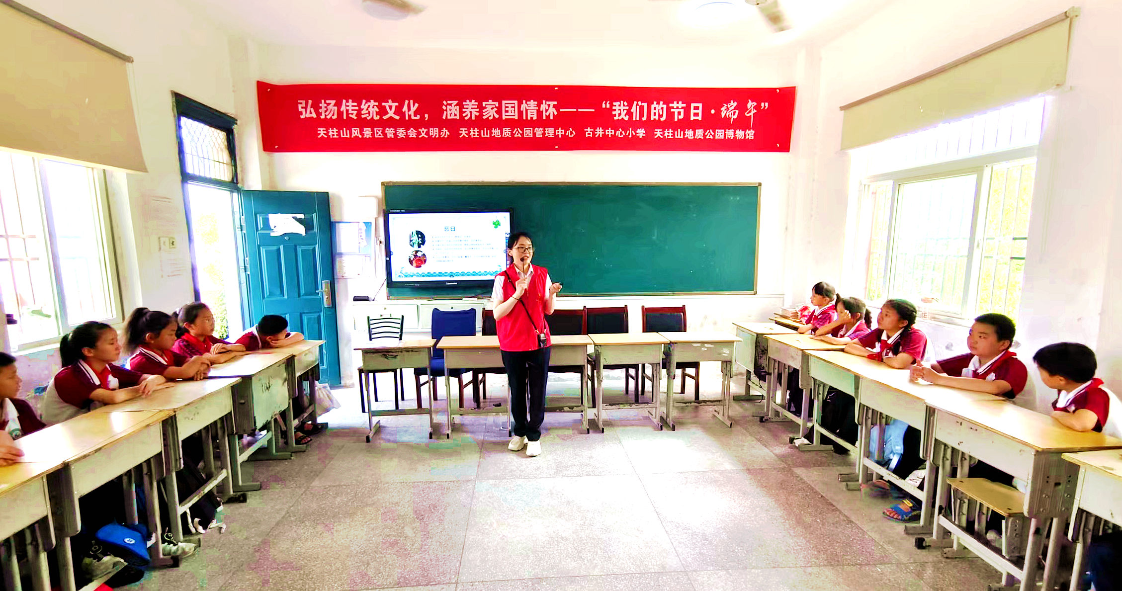 为进一步弘扬中华民族优秀传统文化,培养和践行社会主义核心价值观,丰富人民群众精神文化生活,引导大众进一步了解并传承传统节日的文化内涵,6月21日,在端午节即将到来之际,天柱山世界地质公园联合潜山市古井中心小学开展了“弘扬传统文化,涵养家国情怀”端午节主题科普活动。